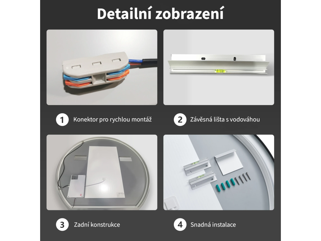 Na zadnej strane zrkadla je pripravený konektor na pripojenie k zdroju. Je to praktické riešenie, ktoré umožňuje skryť káble za zrkadlom, čo zaisťuje estetický a upravený vzhľad kúpeľne.