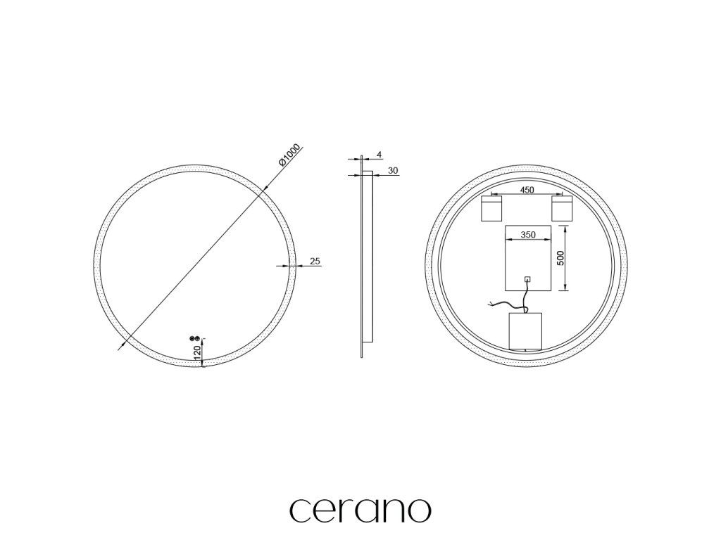 CERANO - Kúpeľňové LED zrkadlo Aureo - Ø 100 cm