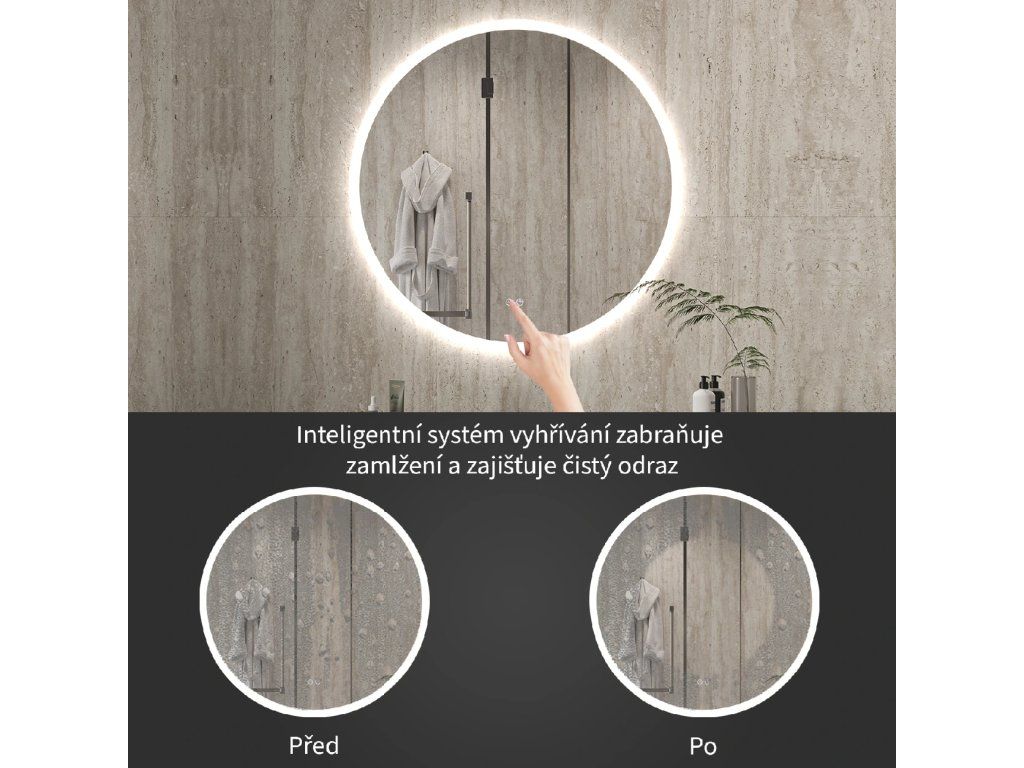 Zrkadlo je vybavené LED osvetlením s nastaviteľnou farbou svetla – od 3000 K (teplá) do 6000 K (Neutrálna). Prepínanie farieb jednoducho ovládate dotykovým tlačidlom na ploche zrkadla. Poskytuje intenzívne a jasné svetlo pre detailnú starostlivosť aj príjemné, jemné osvetlenie na relaxáciu. Vďaka širokému rozsahu teploty farieb tak ľahko prispôsobíte atmosféru aktuálnej potrebe.