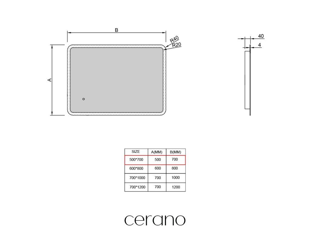 CERANO - Kúpeľňové LED zrkadlo Avano - 70x50 cm