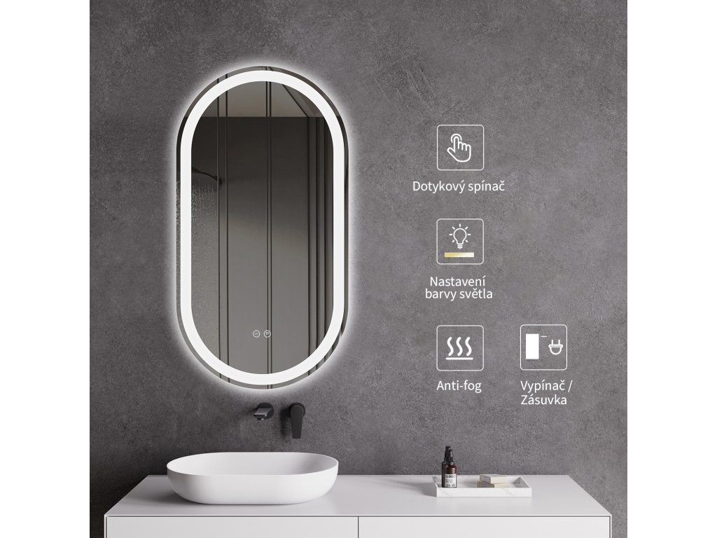 Zrkadlo je vybavené LED osvetlením s nastaviteľnou farbou svetla – od 2800K (teplá) do 6000K (Neutrálna). Poskytuje intenzívne a jasné osvetlenie pre detailnú starostlivosť aj príjemné a jemné svetlo na relaxáciu. Vďaka širokému rozsahu teploty farieb je možné prispôsobiť atmosféru podľa potreby.