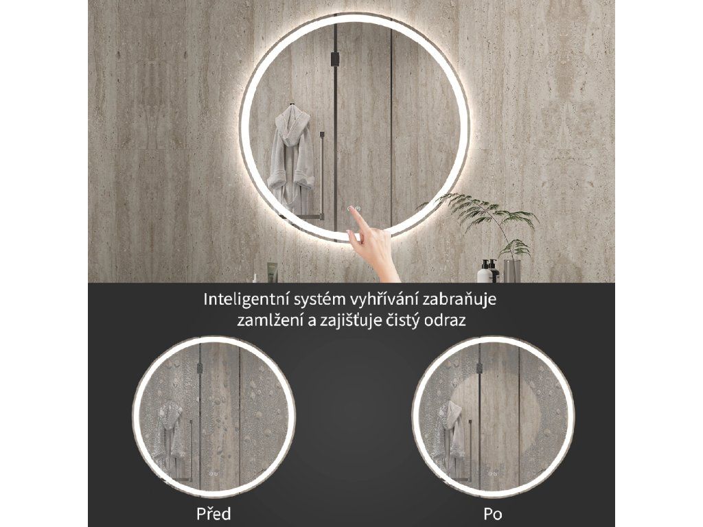 Zrkadlo je vybavené LED osvetlením s nastaviteľnou farbou svetla – od 3000 K (teplá) do 6000 K (Neutrálna). Prepínanie farieb jednoducho ovládate dotykovým tlačidlom na ploche zrkadla. Poskytuje intenzívne a jasné svetlo pre detailnú starostlivosť aj príjemné, jemné osvetlenie na relaxáciu. Vďaka širokému rozsahu teploty farieb tak ľahko prispôsobíte atmosféru aktuálnej potrebe.