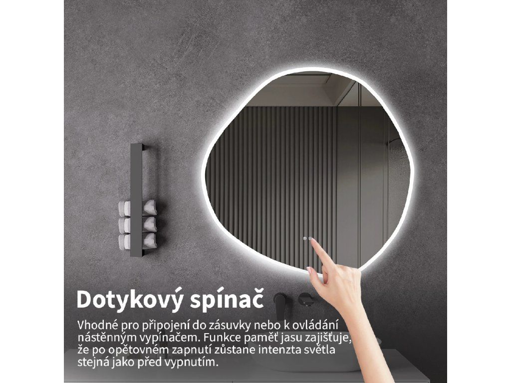 Osvetlenie zrkadla je možné ľahko a pohodlne zapnúť dotykom prepínača na paneli zrkadla. Umožňuje rýchle nastavenie osvetlenia bez nutnosti siahať po vzdialenejšom tradičnom vypínači.