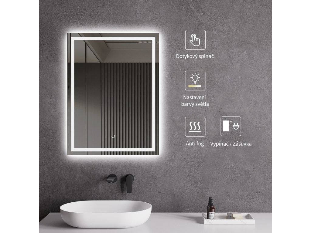 Zrkadlo je vybavené LED osvetlením s nastaviteľnou farbou svetla – od 3000 K (teplá) do 6000 K (Neutrálna). Prepínanie farieb jednoducho ovládate dotykovým tlačidlom na ploche zrkadla. Poskytuje intenzívne a jasné svetlo pre detailnú starostlivosť aj príjemné, jemné osvetlenie na relaxáciu. Vďaka širokému rozsahu teploty farieb tak ľahko prispôsobíte atmosféru aktuálnej potrebe.