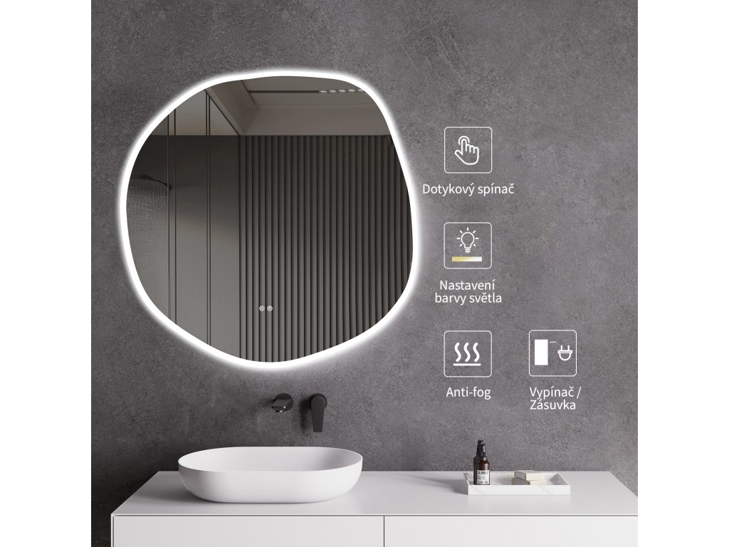 Zrkadlo je vybavené LED osvetlením s nastaviteľnou farbou svetla – od 3000 K (teplá) do 6500 K (Neutrálna). Prepínanie farieb jednoducho ovládate dotykovým tlačidlom na ploche zrkadla. Poskytuje intenzívne a jasné svetlo pre detailnú starostlivosť aj príjemné, jemné osvetlenie na relaxáciu. Vďaka širokému rozsahu teploty farieb tak ľahko prispôsobíte atmosféru aktuálnej potrebe.