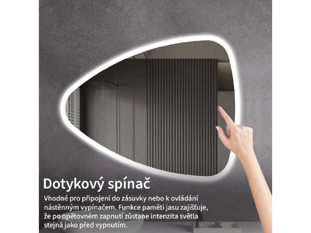 Osvetlenie zrkadla je možné ľahko a pohodlne zapnúť dotykom prepínača na paneli zrkadla. Umožňuje rýchle nastavenie osvetlenia bez nutnosti siahať po vzdialenejšom tradičnom vypínači.