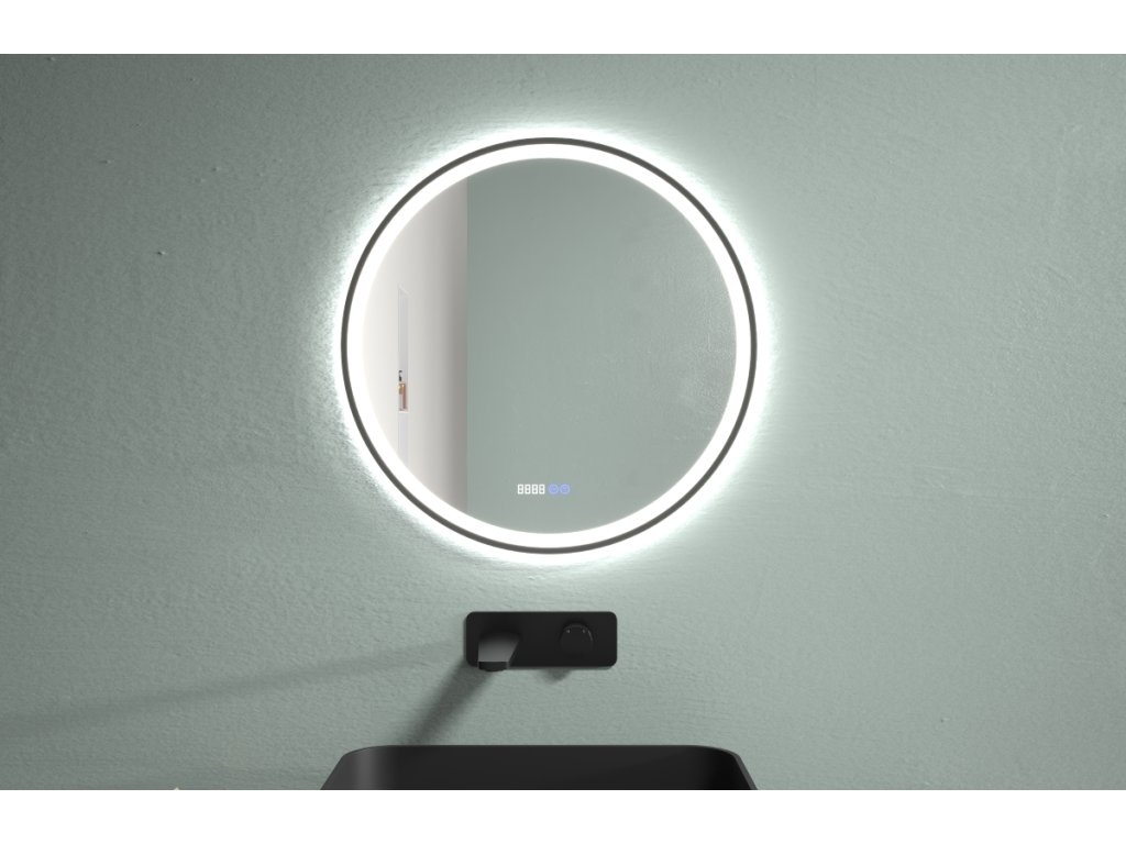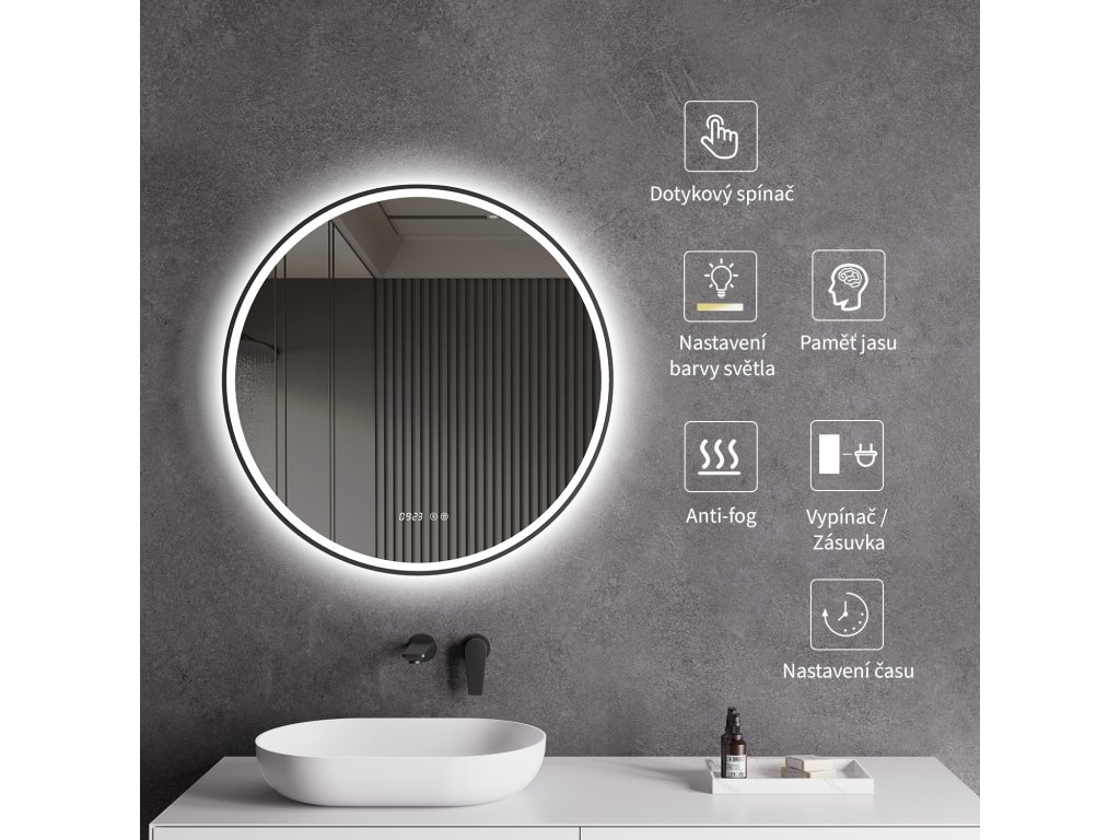 CERANO - Kúpeľňové LED zrkadlo Rivo, kovový rám - čierna matná - Ø 80 cm - 2 AKOSŤ