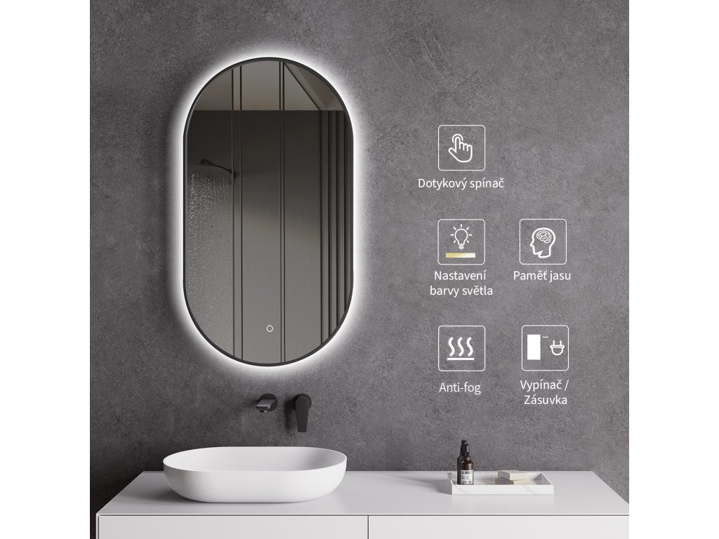 Cerano prináša do vašej kúpeľne zrkadlo, ktoré spája moderný design s vysokou funkčnosťou. Toto závesné kruhové LED zrkadlo je vybavené vybavené elegantným čiernym rámom v matnej úprave, ktorý dodáva vašej kúpeľni sofistikovaný vzhľad.