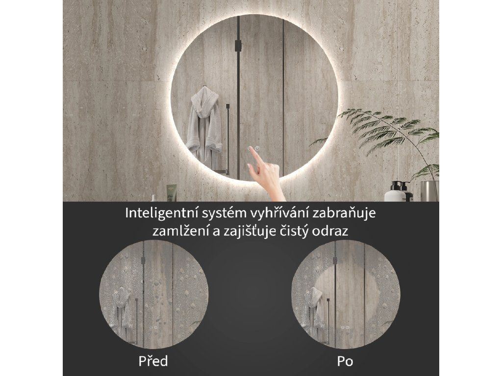 Zrkadlo je vybavené LED osvetlením s nastaviteľnou farbou svetla – od 3000 K (teplá) do 6000 K (Neutrálna). Prepínanie farieb jednoducho ovládate dotykovým tlačidlom na ploche zrkadla. Poskytuje intenzívne a jasné svetlo pre detailnú starostlivosť aj príjemné, jemné osvetlenie na relaxáciu. Vďaka širokému rozsahu teploty farieb tak ľahko prispôsobíte atmosféru aktuálnej potrebe.