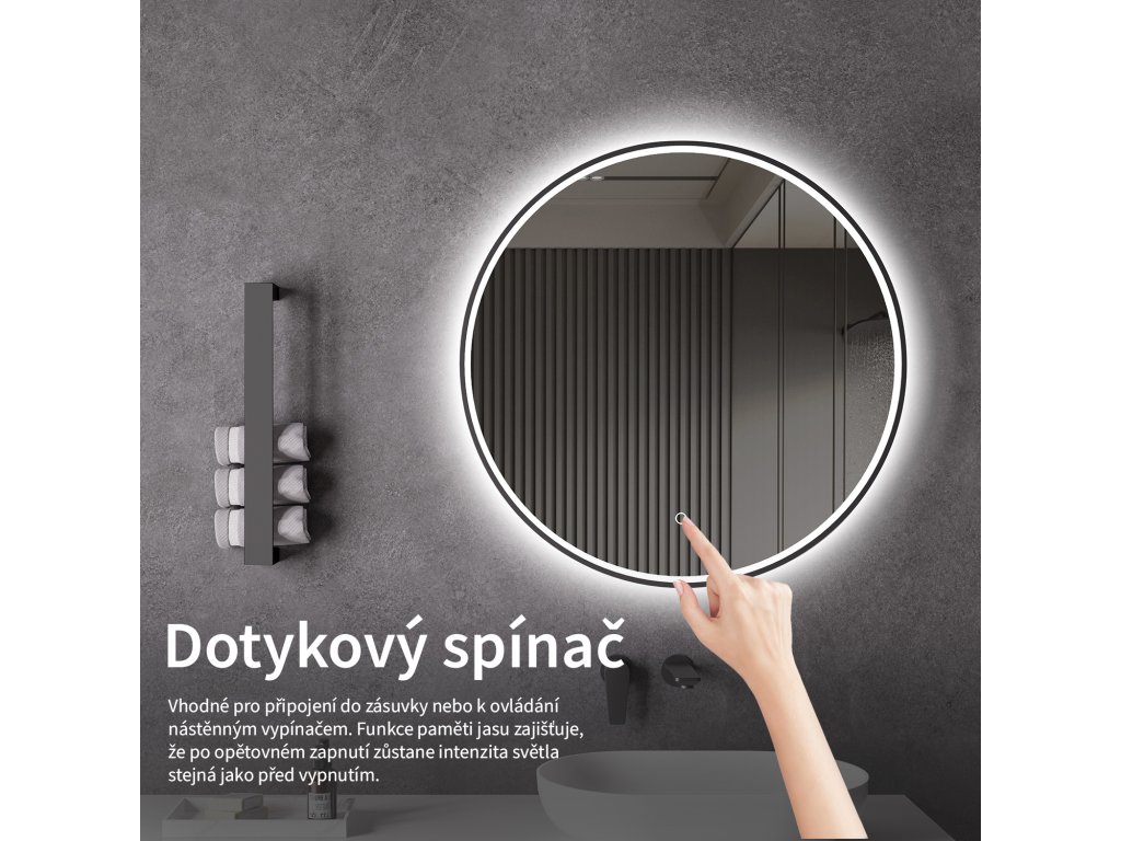 LED zrkadlo disponuje stmievačom, ktorý umožňuje presné nastavenie intenzity osvetlenia. Jednoduchým dotykom na senzorové pole svetlo zapnete alebo vypnete. Podržaním prsta upravíte jas podľa potreby – svetlo plynulo zosilňuje alebo tlmí, aby vždy ponúklo ideálne osvetlenie presne podľa vašich požiadaviek.
