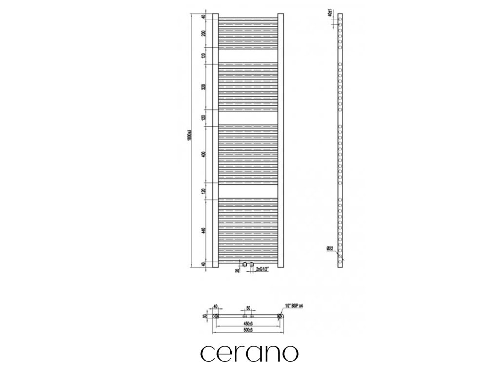 Štandardné pripojenie radiátora je 1/2", čo zaisťuje kompatibilitu s ventilmi a prípojnými sadami Cerano, aj od iných výrobcov. Uistite sa, že všetky súčasti zodpovedajú tomuto priemeru, aby bola zaistená bezpečná a efektívna prevádzka.