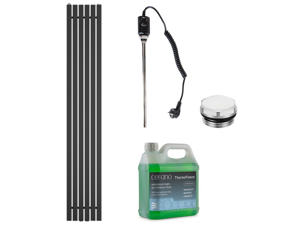 CERANO - Kúpeľňový elektrický radiátorový set Pyricus - 600W - čierna matná - 1800x290 mm
