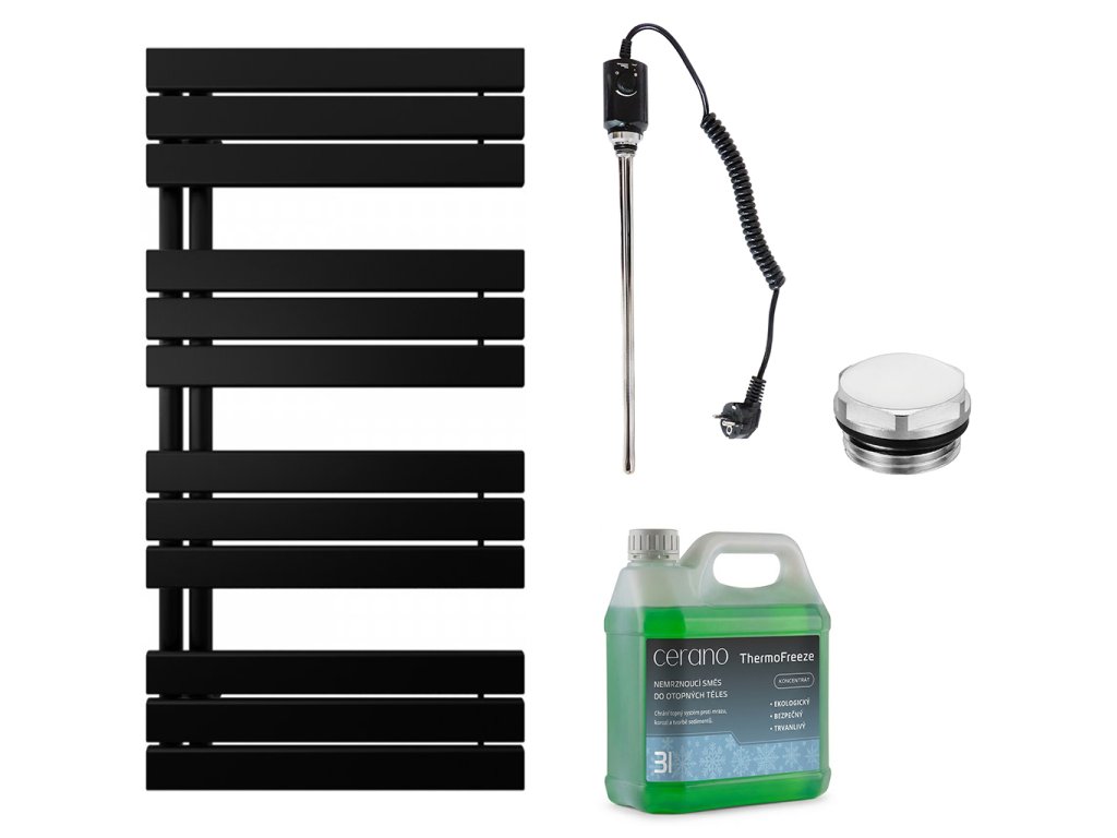 CERANO - Kúpeľňový elektrický radiátorový set Theo - Ľ/P - 600W - čierna matná - 1200x500 mm