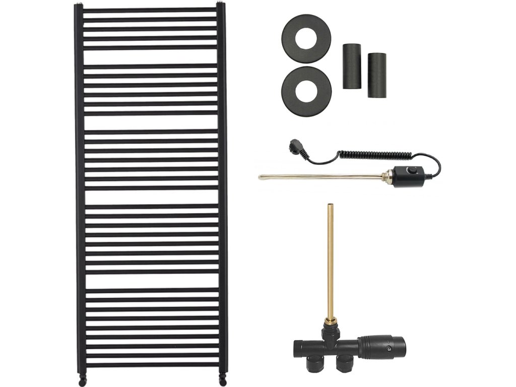 CERANO - Kúpeľňový radiátorový set Alberto - kombinované vykurovanie, termo tyč - bočné jednobodové pripojenie - 999W - čierna matná - 1660x650 mm