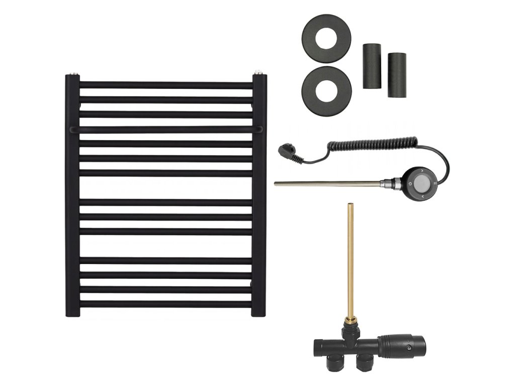 CERANO - Kúpeľňový radiátorový set Antonio - kombinované vykurovanie, wifi tyč - bočné jednobodové pripojenie - 351W - čierna matná - 660x550 mm
