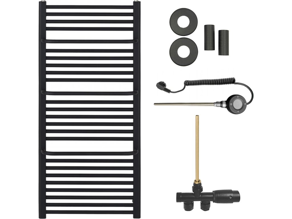 CERANO - Kúpeľňový radiátorový set Antonio - kombinované vykurovanie, wifi tyč - bočné jednobodové pripojenie - 857W - čierna matná - 1460x550 mm