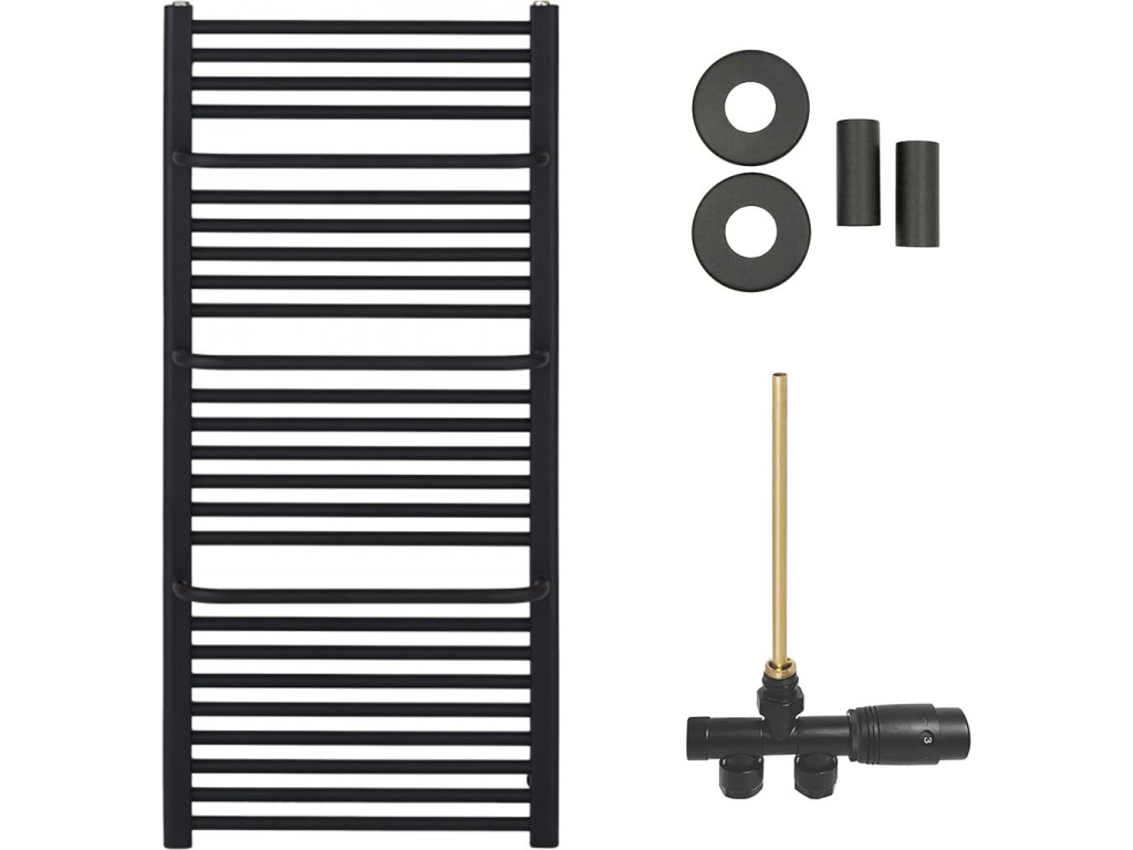 CERANO - Kúpeľňový radiátorový set Antonio - ústredné vykurovanie - bočné jednobodové pripojenie - 655W - čierna matná - 1180x550 mm