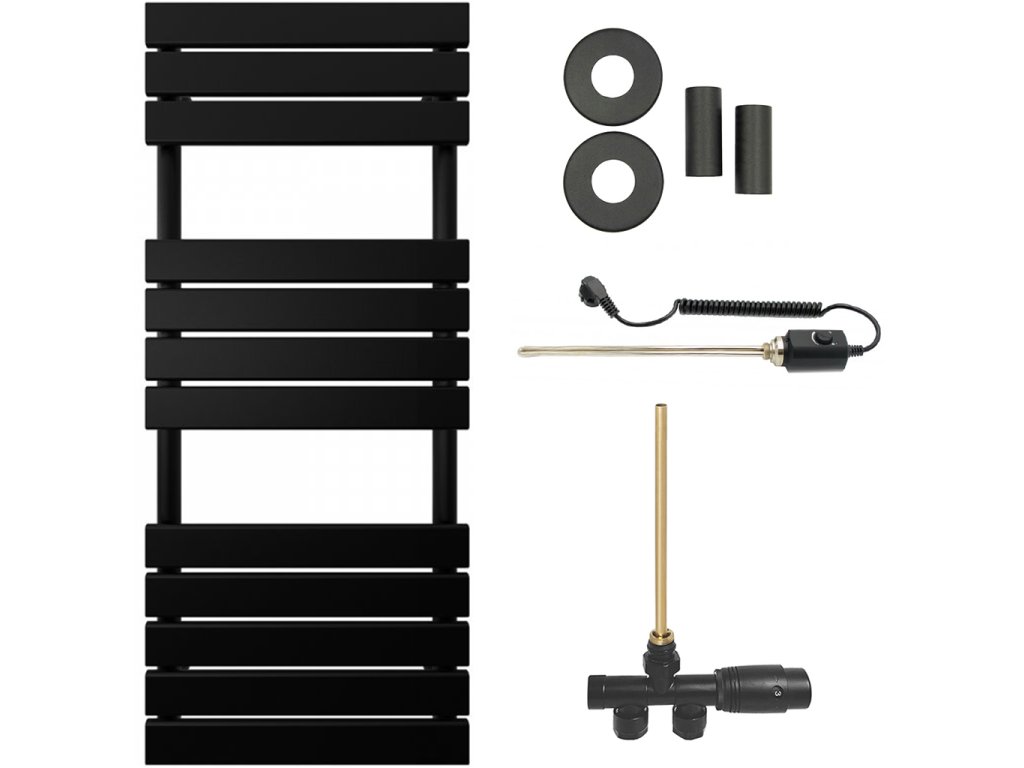 CERANO - Kúpeľňový radiátorový set Claude - kombinované vykurovanie, termo tyč - bočné jednobodové pripojenie - 650W - čierna matná - 1200x500 mm