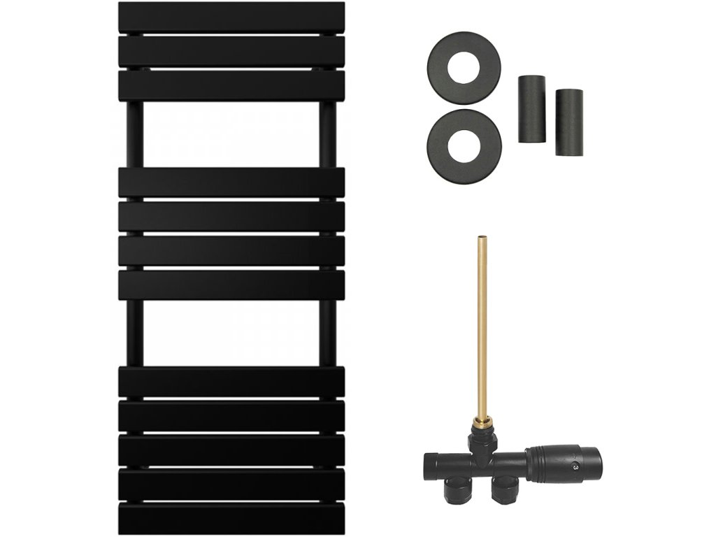 CERANO - Kúpeľňový radiátorový set Claude - ústredné vykurovanie - bočné jednobodové pripojenie - 650W - čierna matná - 1200x500 mm