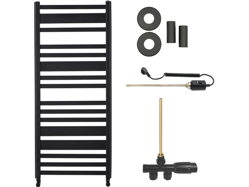 CERANO - Kúpeľňový radiátorový set Enrico - kombinované vykurovanie, termo tyč - bočné jednobodové pripojenie - 559W - čierna matná - 1210x550 mm