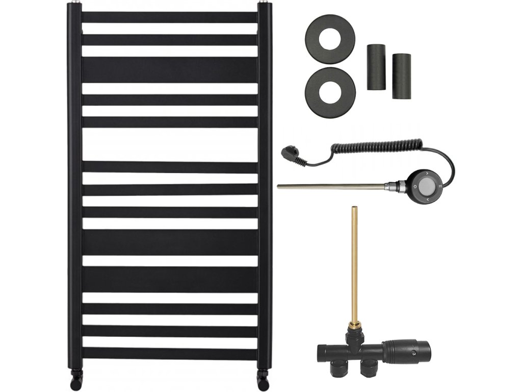 CERANO - Kúpeľňový radiátorový set Enrico - kombinované vykurovanie, wifi tyč - bočné jednobodové pripojenie - 467W - čierna matná - 970x500 mm