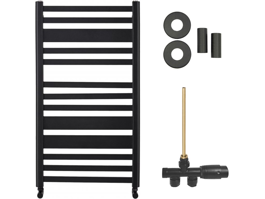 CERANO - Kúpeľňový radiátorový set Enrico - ústredné vykurovanie - bočné jednobodové pripojenie - 467W - čierna matná - 970x500 mm