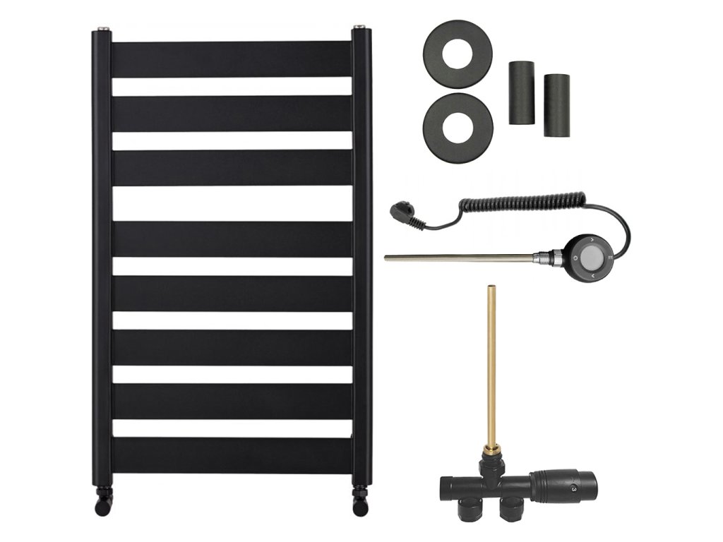 CERANO - Kúpeľňový radiátorový set Marco - kombinované vykurovanie, wifi tyč - bočné jednobodové pripojenie - 698W - čierna matná - 920x550 mm
