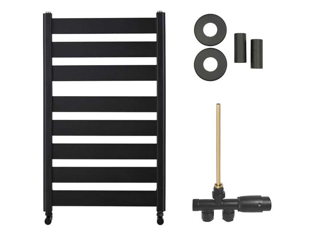 CERANO - Kúpeľňový radiátorový set Marco - ústredné vykurovanie - bočné jednobodové pripojenie - 698W - čierna matná - 920x550 mm