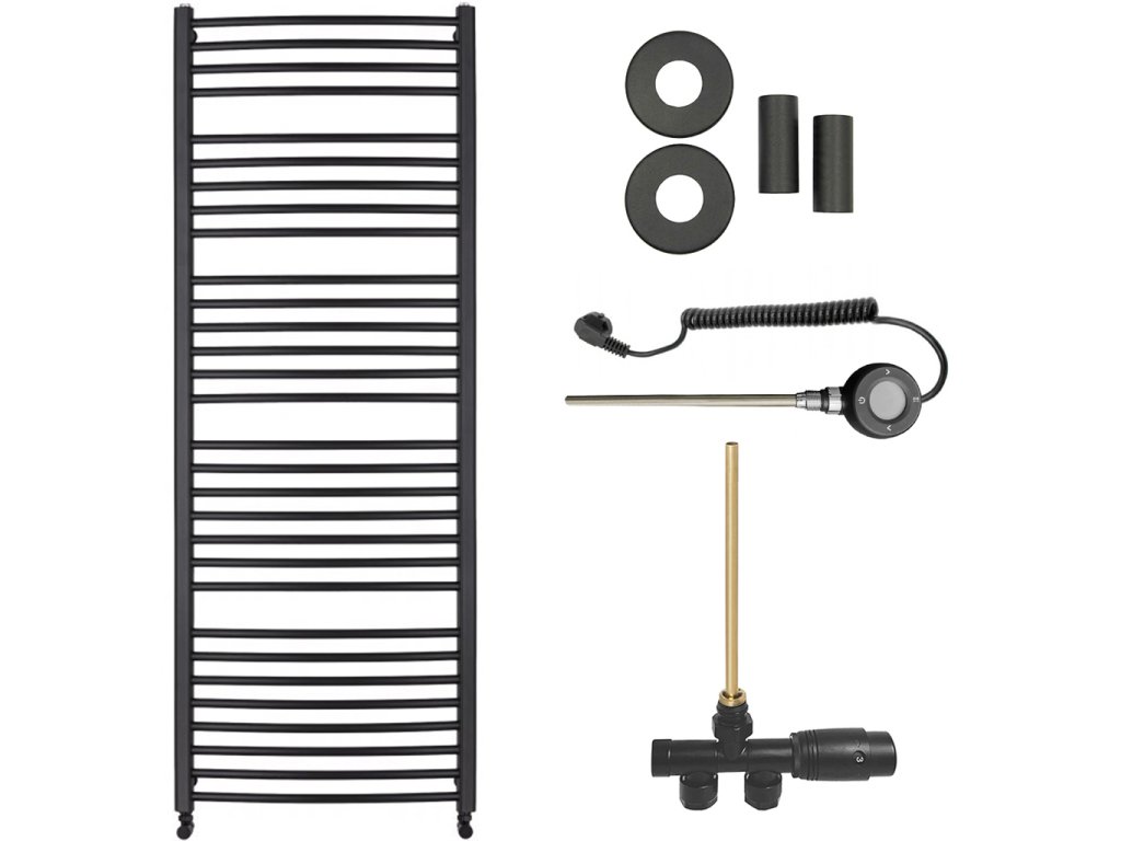 CERANO - Kúpeľňový radiátorový set Stefano - kombinované vykurovanie, wifi tyč - bočné jednobodové pripojenie - 773W - čierna matná - 1460x650 mm