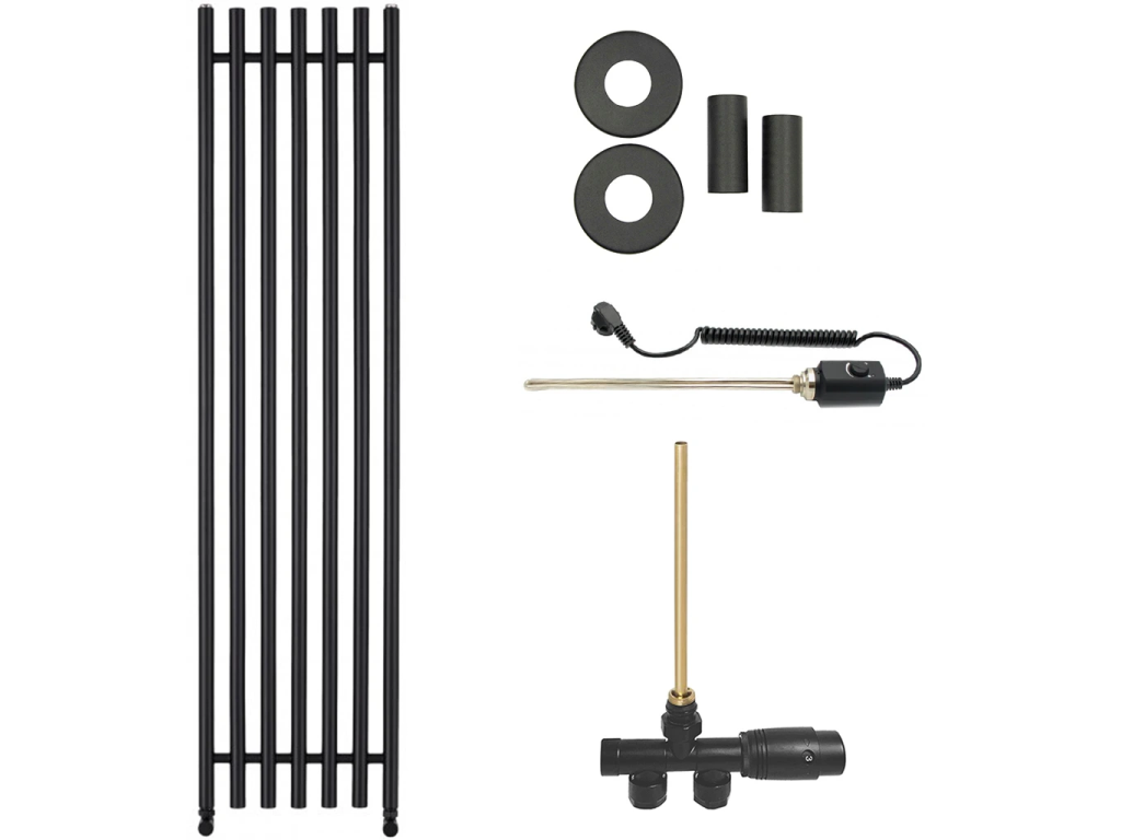 CERANO - Kúpeľňový radiátorový set Valerio - kombinované vykurovanie, termo tyč - bočné jednobodové pripojenie - 872W - čierna matná - 1560x390 mm