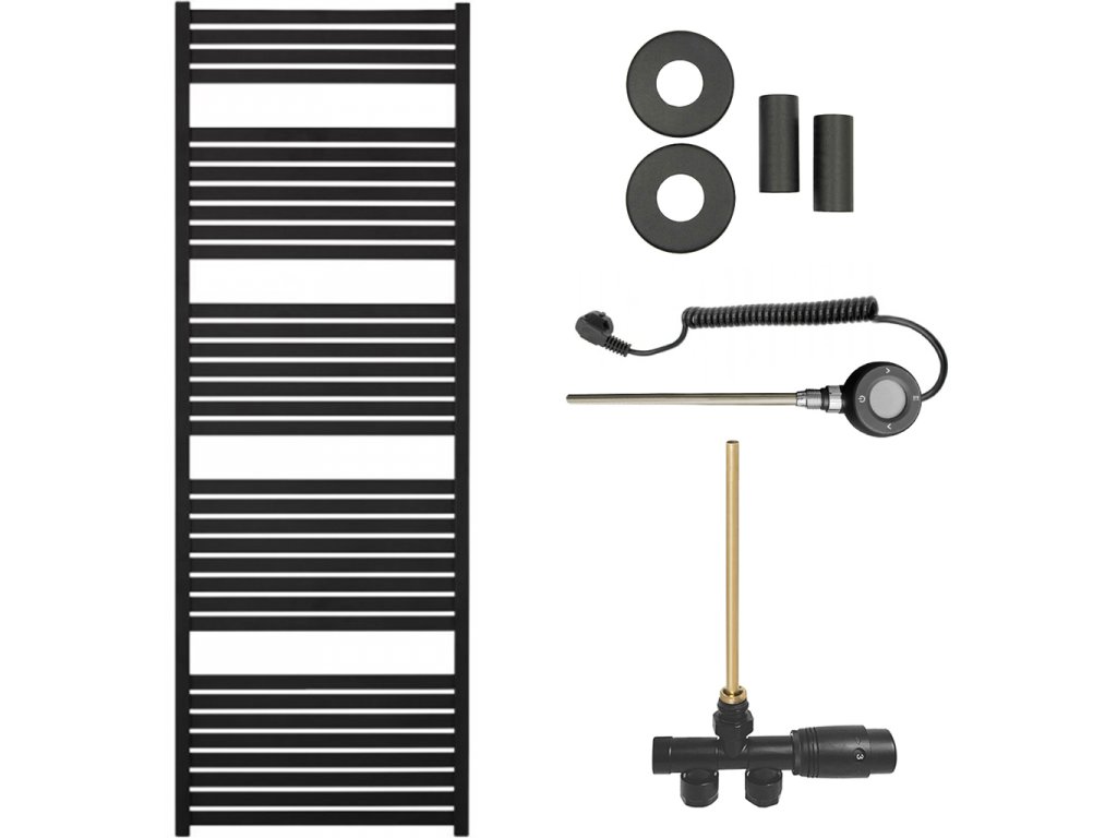 CERANO - Kúpeľňový radiátorový set Vincenzo - kombinované vykurovanie, wifi tyč - bočné jednobodové pripojenie - 800W - čierna matná - 1690x600 mm
