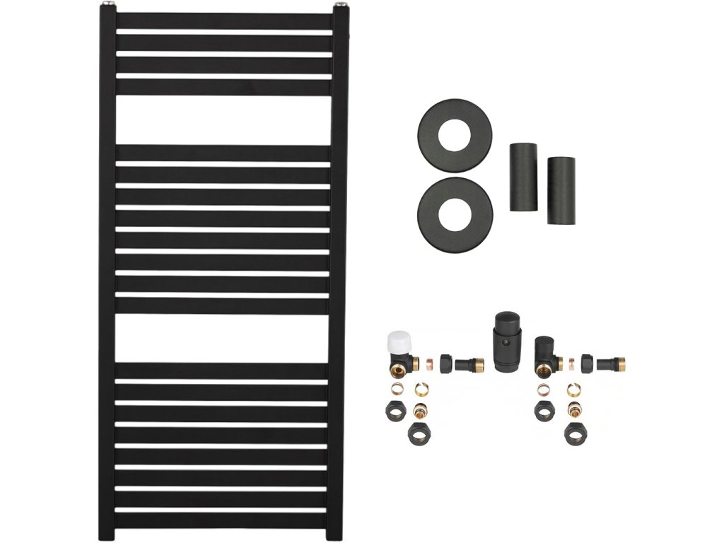 CERANO - Kúpeľňový radiátorový set Vincenzo - ústredné vykurovanie - bočné pripojenie - 300W - čierna matná - 970x450 mm