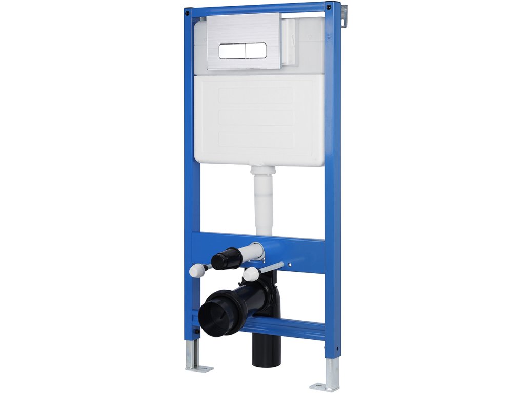 - Modul pre závesné WC určený na montáž do stien zo sadrokartónu, ktorý poskytuje pevné a stabilné uchytenie, pričom všetky inštalačné komponenty sú skryté a chránené.