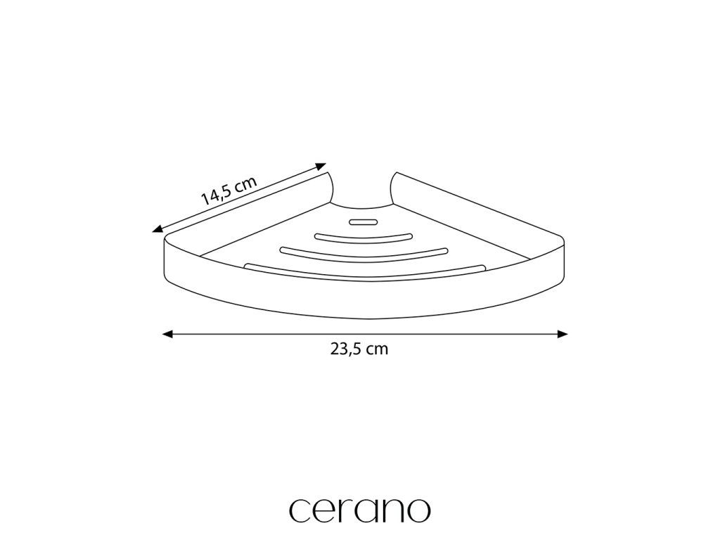 Vďaka svojmu šikovnému a zároveň elegantnému prevedeniu sa rohová polica značky Cerano skvele hodí do akéhokoľvek sprchovacieho kúta a pomáha udržať všetko prehľadne usporiadané. Pre dokonalý vzhľad ju môžete kombinovať s ďalšími kúpeľňovými doplnkami v rovnakom dizajne.