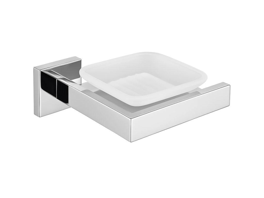 Mydelnička sa skladá z pevného držiaka z nerezovej ocele a štvorcovej misky z tvrdeného skla , ktorá nielen skvele vyzerá, ale tiež sa ľahko čistí. K dispozícii je v dvoch farebných variantoch, čierna matná pre sofistikovaný vzhľad alebo chróm , ktorý dodá interiéru nadčasovú eleganciu. Vďaka nástennému prevedeniu zostáva umývadlo vždy čisté a bez zbytočných stôp po vode či mydle.