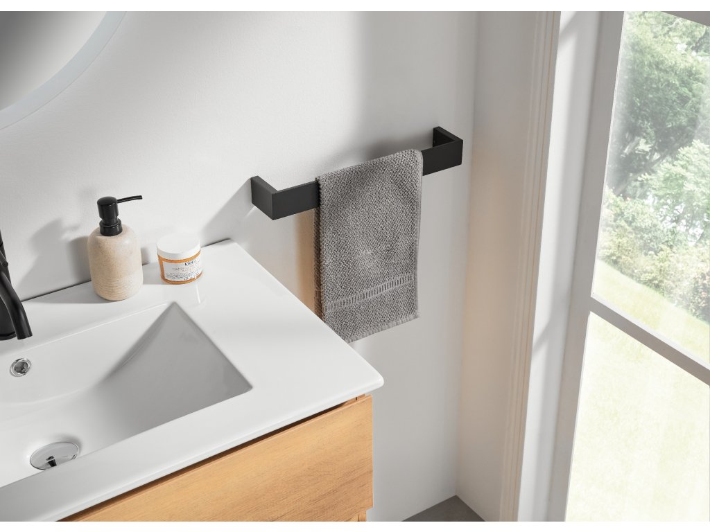 Držiak uterákov má moderný vzhľad, ktorý sa ľahko zladí s rôznymi dekoratívnymi štýlmi kúpeľne. V našej ponuke je možné vyberať z čierneho a chrómového prevedenia. Stačí tak prihliadnuť na design vašej kúpeľne. Svoje jednoduché a funkčné prevedenie robí z tohto držiaka ideálny doplnok do každého domova, ktorý nemusí nájsť využitie iba v kúpeľni.