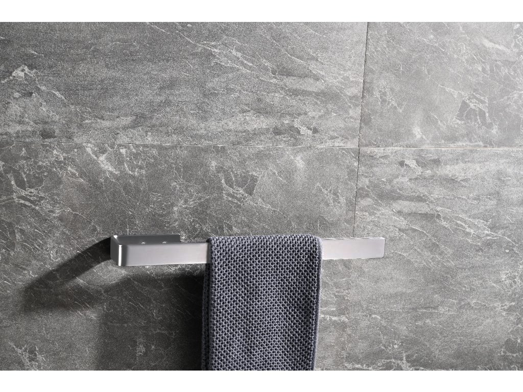 Držiak uterákov má moderný vzhľad, ktorý sa ľahko zladí s rôznymi dekoratívnymi štýlmi kúpeľne. V našej ponuke je možné vyberať z čierneho a chrómového prevedenia. Stačí tak prihliadnuť na design vašej kúpeľne. Svoje jednoduché a funkčné prevedenie robí z tohto držiaka ideálny doplnok do každého domova, ktorý nemusí nájsť využitie iba v kúpeľni.
