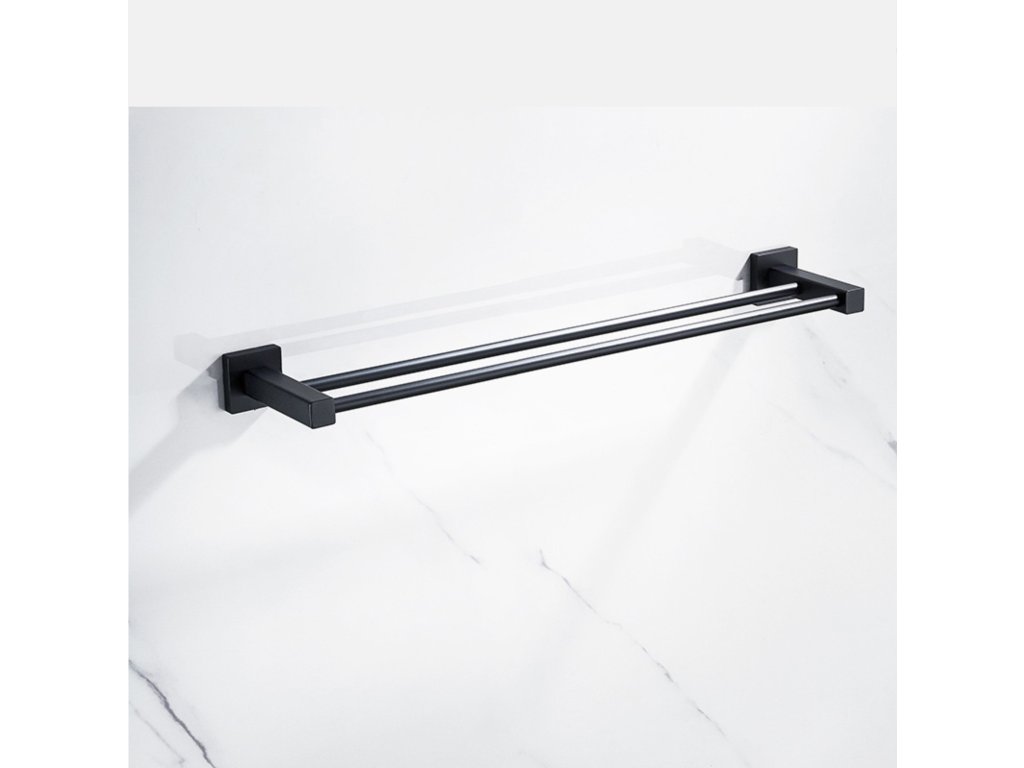 CERANO - Nástenný dvojitý držiak na uteráky Polo - čierna matná - 60 cm