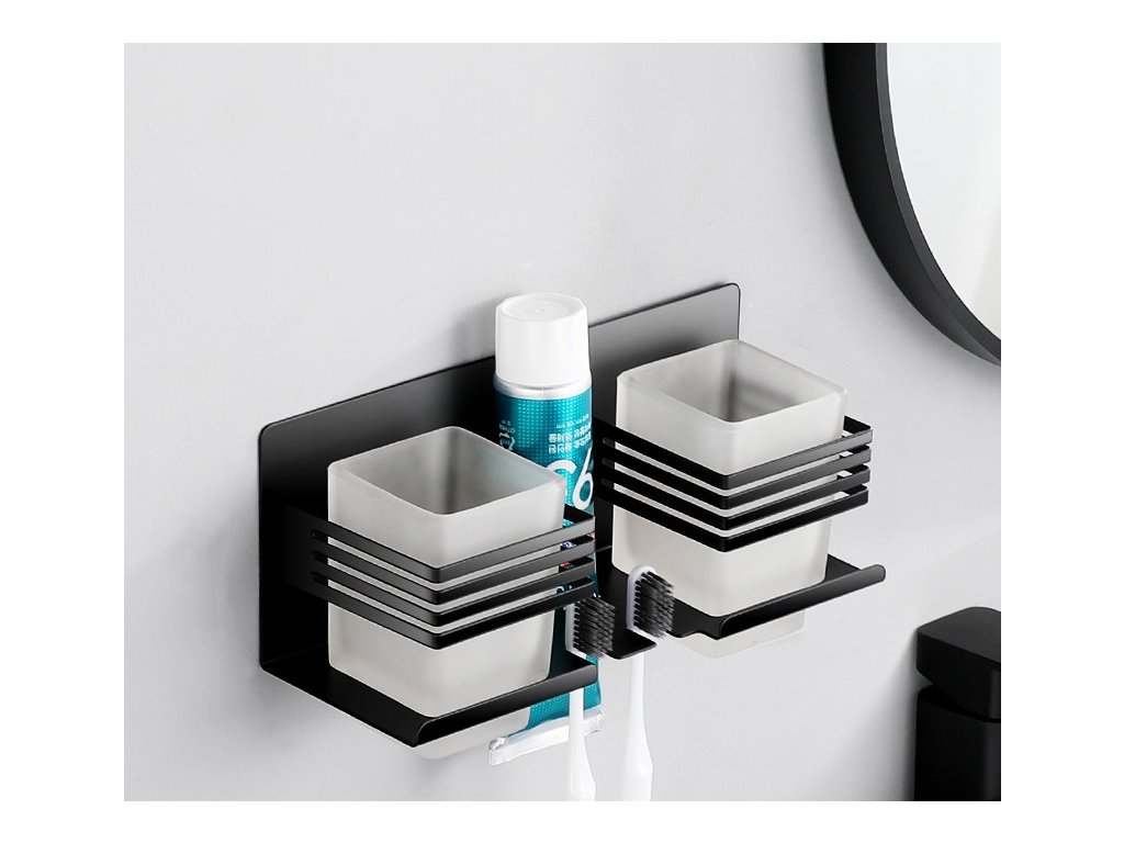 Samotný držiak poskytuje ideálne riešenie pre hygienické zavesenie zubných kefiek a vertikálne postavenie zubnej pasty vo výrezoch medzi pohármi.