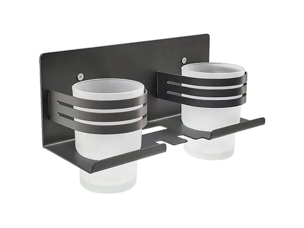 CERANO - Nástenný/Samolepiaci držiak na zubné kefky a poháre Balto - čierna matná
