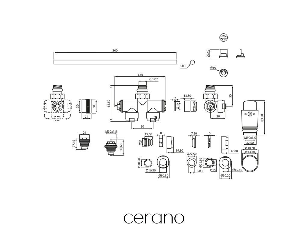 Jedná sa o sadu pre dolné pripojenie radiátora, ktorá obsahuje umožňuje variabilnú montáž na prívody vykurovacieho média ako z podlahy, tak zo steny, pootočením prívodov ventilu. Táto sada umožňuje inštaláciu prídavnej elektrickej vykurovacej tyče na druhú stojnu kúpeľňového radiátora.