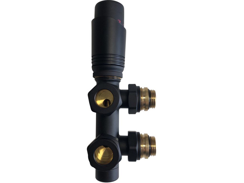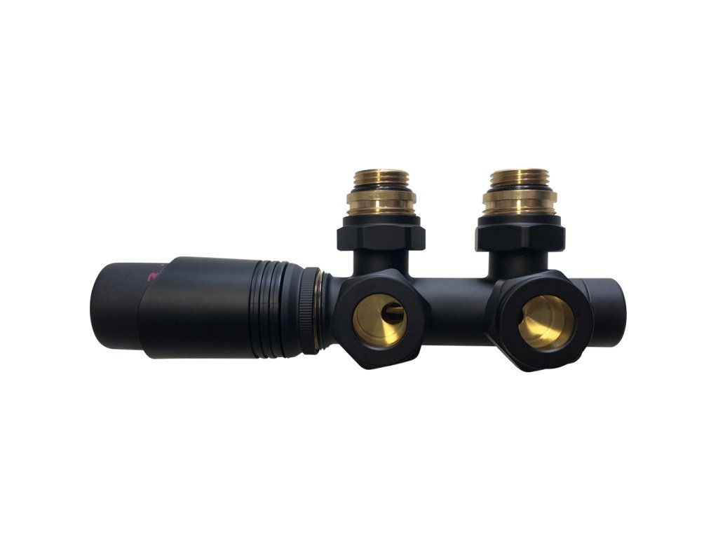 CERANO - Pripojovacia sada radiátorového ventilu s termostatickou hlavicou - stredové pripojenie 50mm - čierna matná