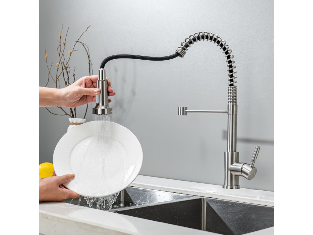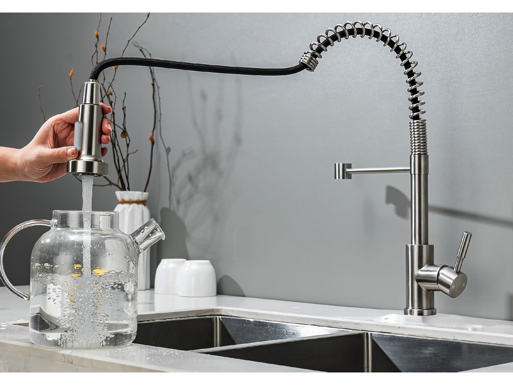 Je funkcia dovoľujúca vysunúť spršku, čo uľahčuje manipuláciu s vodným lúčom pri umývaní riadu, čistení drezu alebo plnení hrncov. Sprška je spojená s telom batérie pružnou hadicou, ktorá sa vďaka spätnému mechanizmu automaticky vracia do pôvodnej pozície.