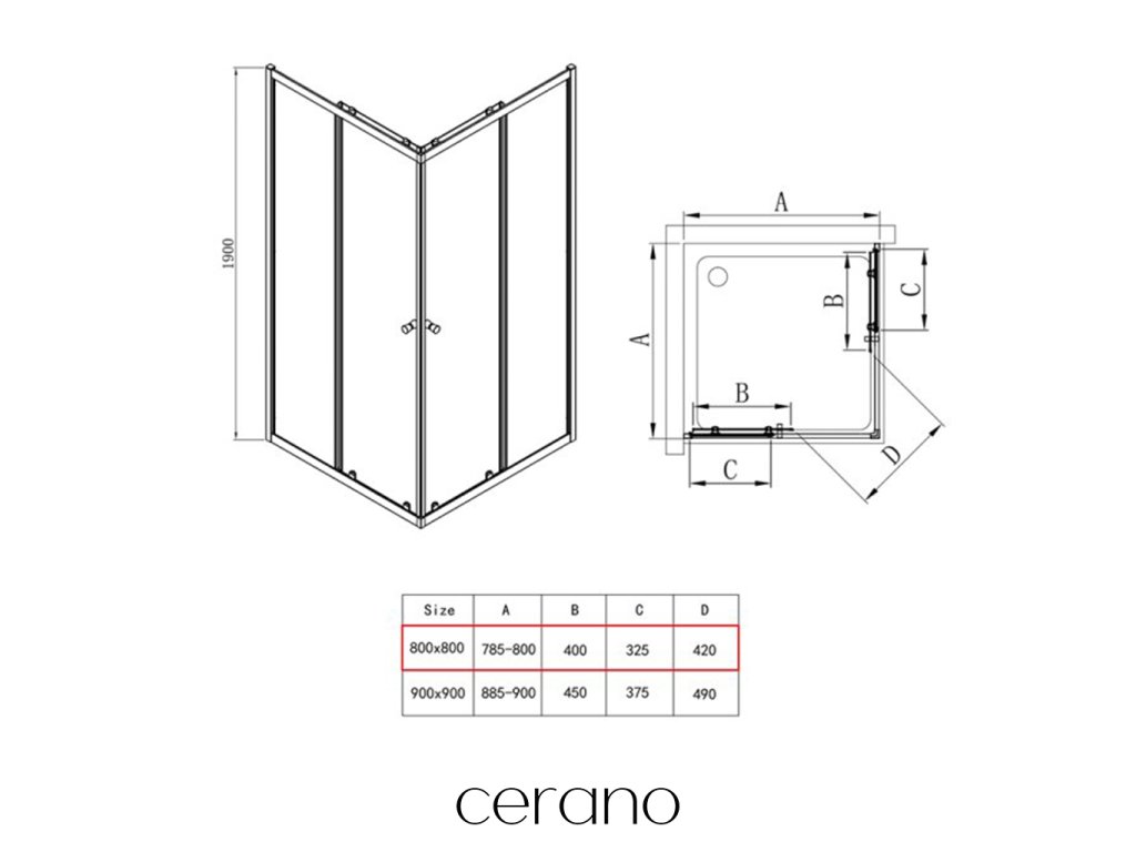 CERANO PROJECT - Sprchovací kút Fabrizio L/P - 5 mm - čierna matná, transparentné sklo - 80x80x190 cm - posuvný