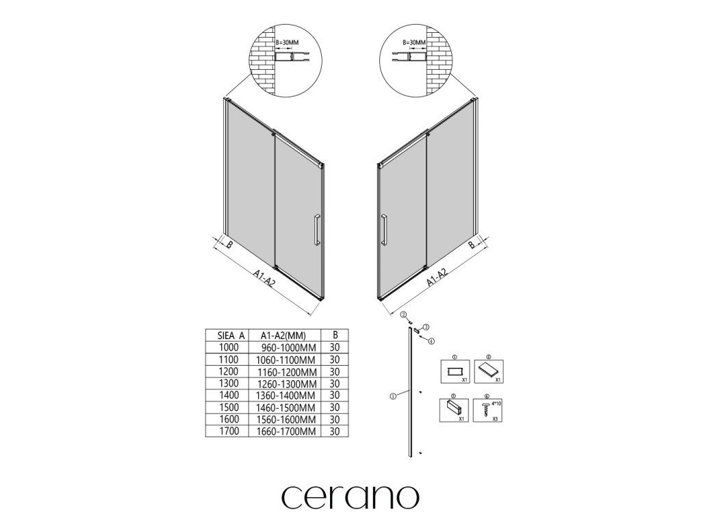 Tento rozširujúci profil značky Cerano je navrhnutý na jednoduché prispôsobenie sprchových dverí Lantono do širších stavebných otvorov .