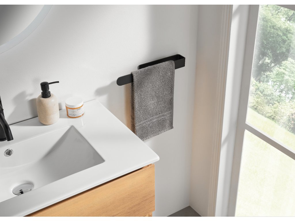 CERANO - Samolepiaci držiak na uteráky Donatello - čierna matná - 35,4 cm
