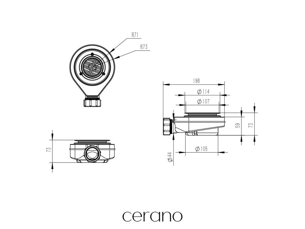 CERANO - Sifón sprchovej vaničky 90mm - krátky - DN40 - príruba nerez