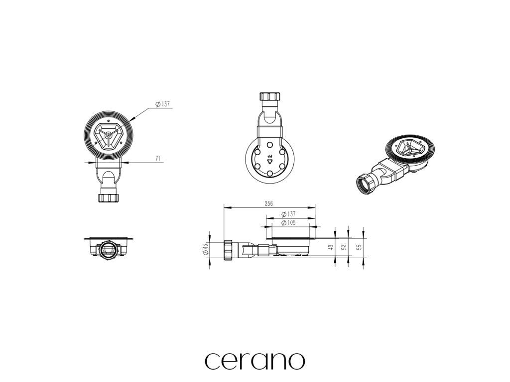 CERANO - Sifón sprchovej vaničky 90mm - Slim - DN40 - príruba šedá