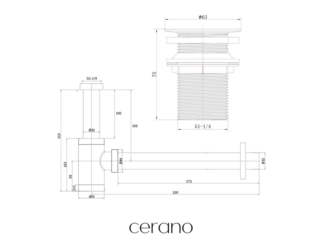 CERANO - Sifón umývadlový - 5/4" - mosadz - DN32 mm - neuzatvárateľný výpust - chróm