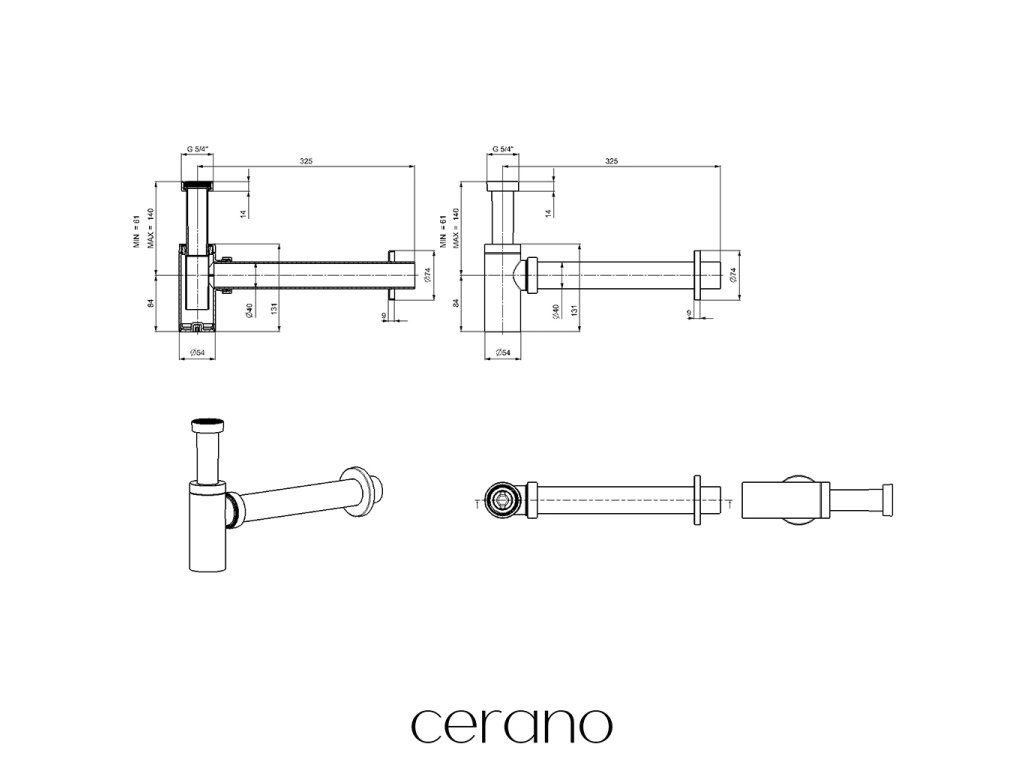 CERANO - Sifón umývadlový - 5/4" - plast - DN40/300mm - chróm